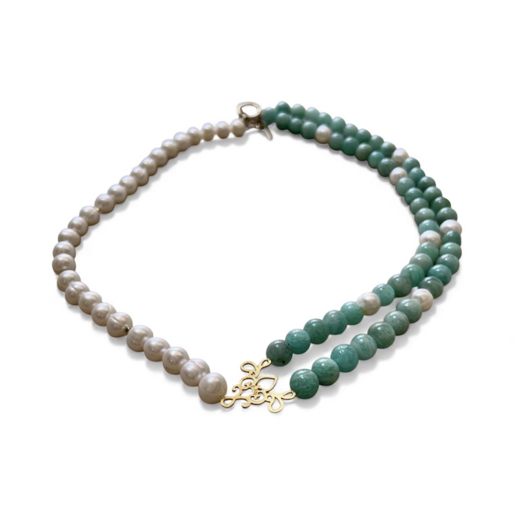 Elevate your style by pairing the Golestan Necklace with our matching bracelet and earrings, exquisitely designed with round freshwater pearls for a timeless and harmonious look.