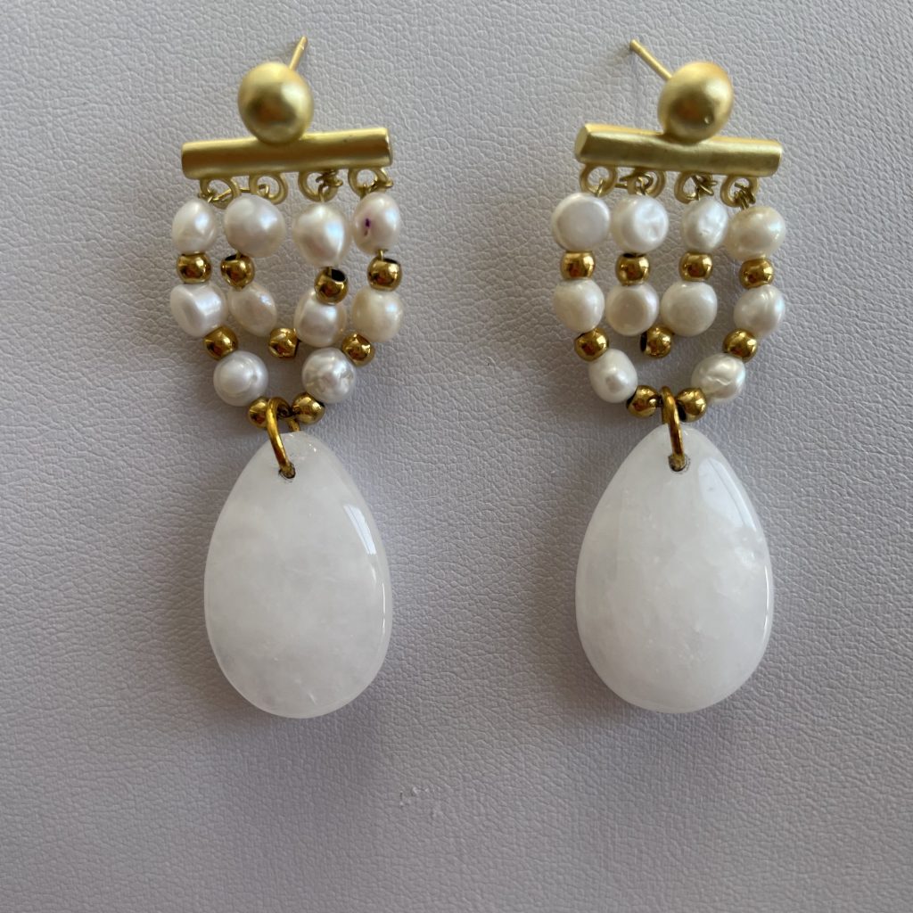Metal: Gold plated, fresh water pearl, Amber Gem stone