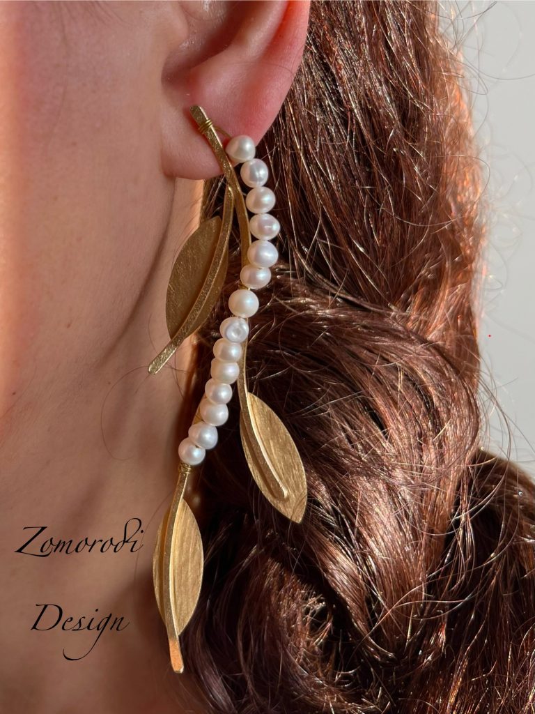 Earrings inspired by the delicate branches of nature, crafted from brass and covered with matte gold and adorned with radiant pearls. This beautiful piece of art is a perfect choice to add a natural and elegant touch to your style.