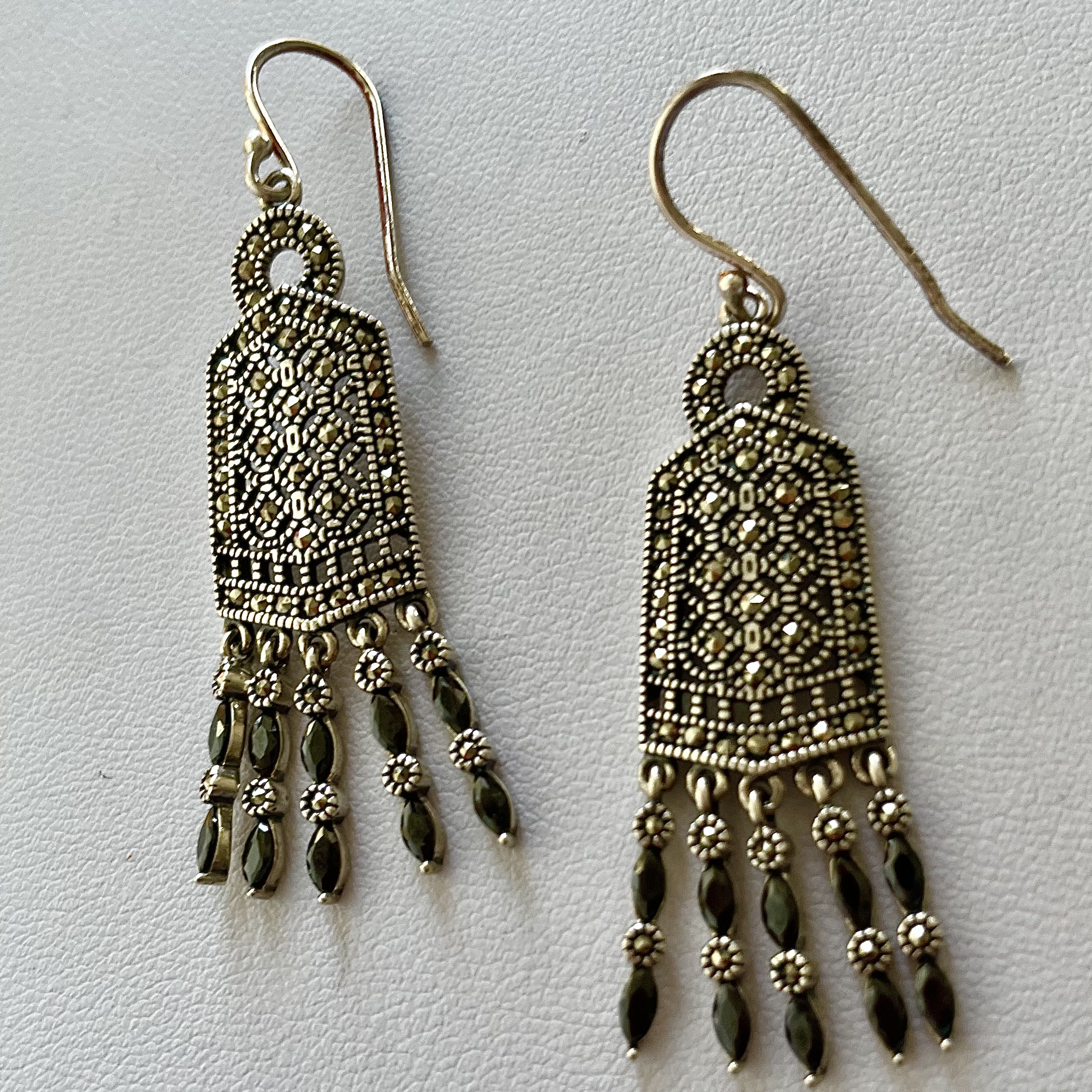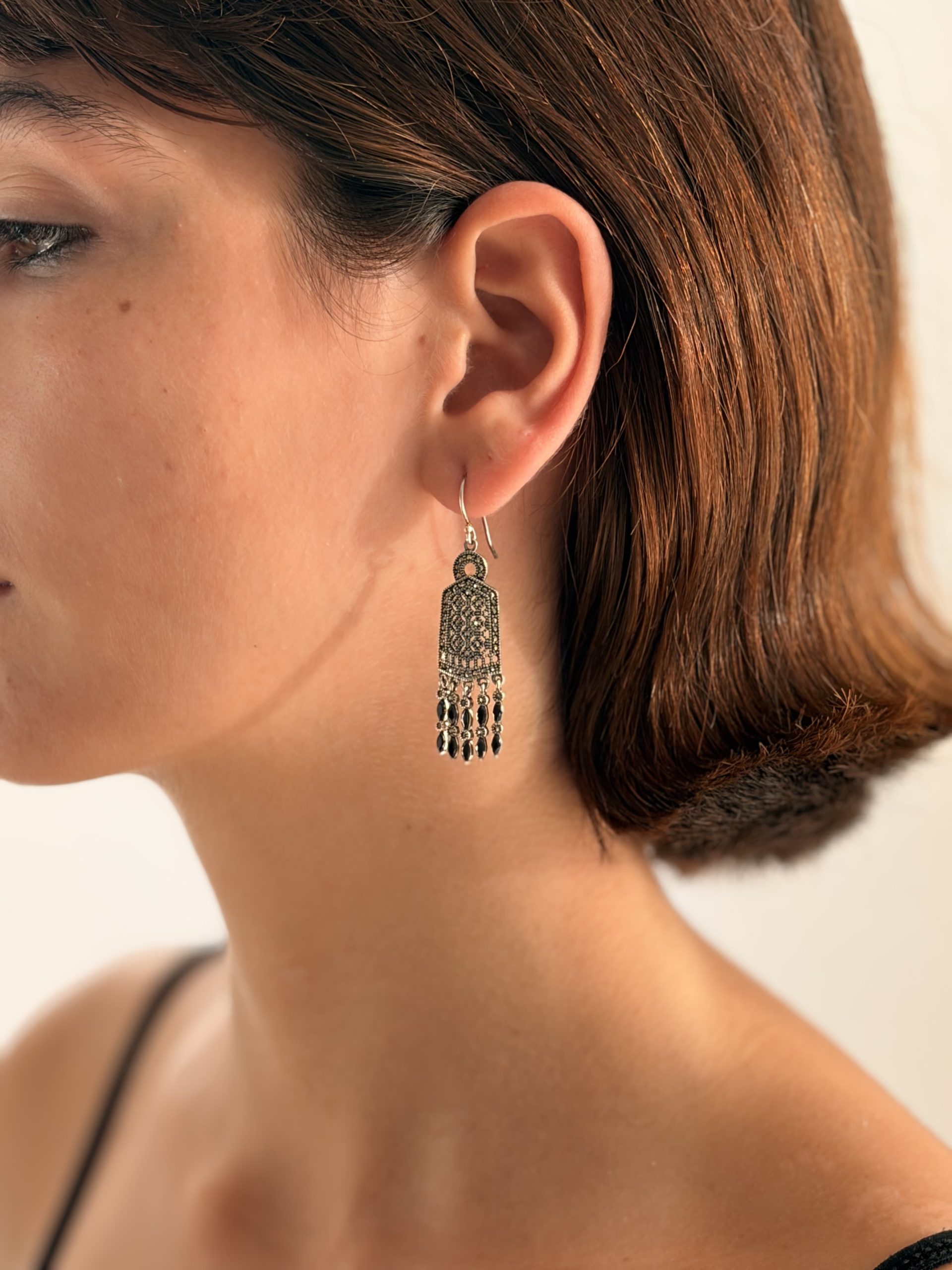 Celebrate the elegance of Persian culture with these exquisite silver earrings, adorned with striking black stones. Inspired by the intricate artistry of Iranian heritage, their timeless design reflects the beauty and depth of ancient Persian motifs, making them a perfect blend of tradition and modern sophistication.