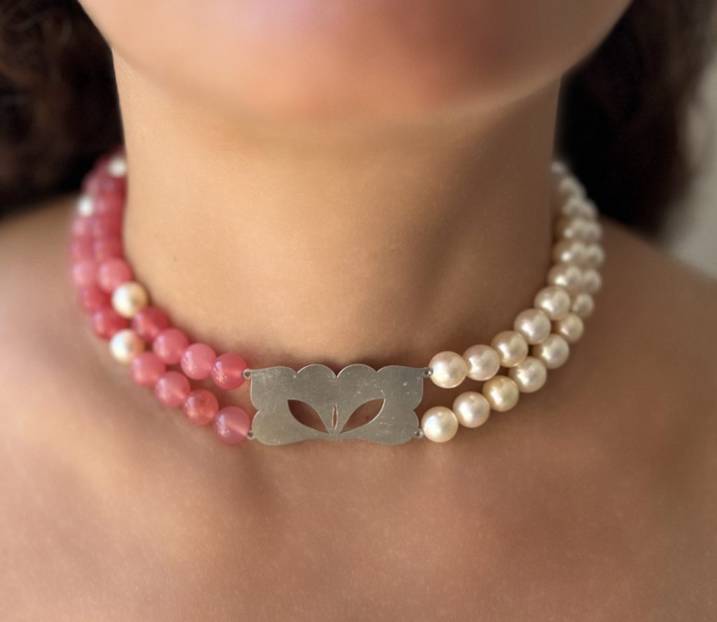 Elevate your style by pairing the Golestan Necklace with our matching bracelet and earrings, exquisitely designed with round freshwater pearls for a timeless and harmonious look.